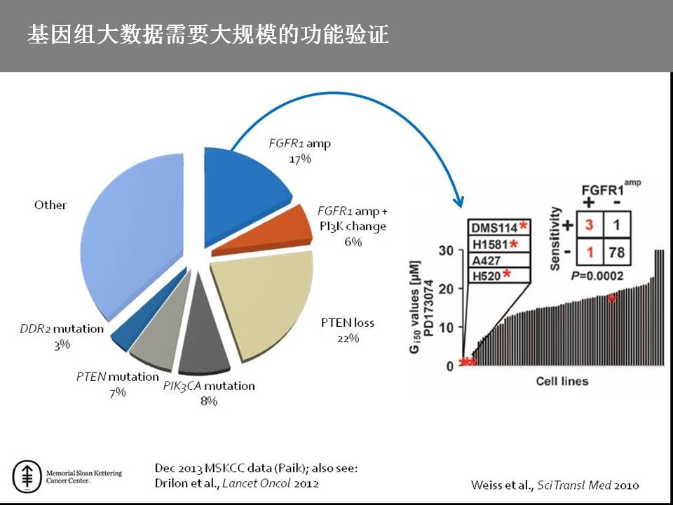 还有一个陷阱是基因组变异数据的功能注释。强生公司的临床一期,只有3个病人达到了临床缓解效果,虽然入组的都是变异人群,但因为他选基因变异时候,并不清楚这个基因的不同变异形式和药物作用效果有什么关系。所以必须经过大规模肿瘤细胞的药效功能研究,比如这个药在靶向基因变异的肺癌患者里有这个相关性,但其他肿瘤类型的变异携带者中没有相关性。