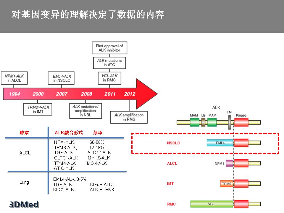 第二个陷阱是对内容的理解。辉瑞的这个药物在2011年上市,仅用4年的临床试验时间就获得了批文,但损失了可能近80%的销售额。这个靶点最早的时候是日本人发现的,其在肺癌里面变异比例在5%到8%,可能差一两个点,当时做不了那么精准。但是,最近我们发现,这个基因可以和100多个基因融合,但辉瑞当时只依据日本科学家的发现检测了EML4-ALK基因的融合,并针对这个基因融合在肺癌里展开临床试验。因此有几倍大的市场,辉瑞都没有触摸到。因此,即使是辉瑞这样大的制药公司,其实对肿瘤的理解在当时也不够深,ALK可以和100多个基因融合,现在很多公司都认识到了,辉瑞这么早领先,但失去了开展更多临床试验,拓展更大适应证的机会,这个错误的决策,至少让辉瑞未来每年少赚了十几亿美元。